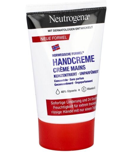 Wirkstoffe / Inhaltsstoffe / ZutatenAqua, Glycerin, Cetearyl Alcohol, Sodium Cetearyl Sulfate, Ethylhexylglycerin, Caprylyl Glycol, Palmitic Acid, Stearic Acid, Disodium Phosphate, Potassium Phosphate, Tocopherol, Tocopheryl Acetate. [PR-0003658]HinweiseMindestens 2x täglich auftragen, nur ein Tropfen genügt. Neutrogena Norweg.formel Konzentr.handcreme Unparf können in Ihrer Versandapotheke www.juvalis.de erworben werden. ...