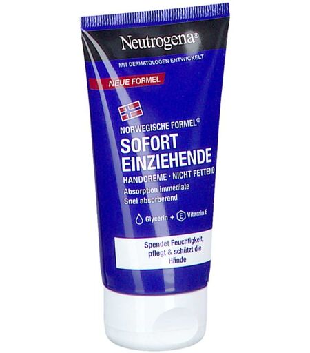 Wirkstoffe / Inhaltsstoffe / ZutatenAqua, Glycerin, Isopropyl Myristate, Ethylhexylglycerin, Caprylyl Glycol, Cetyl Alcohol, Potassium Cetyl Phosphate, p-Anisic Acid, Carbomer, Sodium Polyacrylate, Sodium Hydroxide, Tocopheryl Acetate, Tocopherol, Parfum. [PR-0003707] Neutrogena Norweg.formel Sofort Einzieh.handcreme können in Ihrer Versandapotheke www.juvalis.de erworben werden. ...