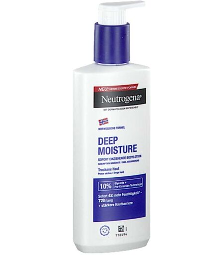 Wirkstoffe / Inhaltsstoffe / ZutatenAqua, Glycerin, Isopropyl Myristate, Cetyl Alcohol, Potassium Cetyl Phosphate, Carbomer, Caprylyl Glycol, Parfum, Sodium Hydroxide, p-Anisic Acid, AvenaS90408501ylhexylglycerin, TocopherolNeutrogena Deep Moisture Bodylotion können in Ihrer Versandapotheke www.apolux.de erworben werden. ...