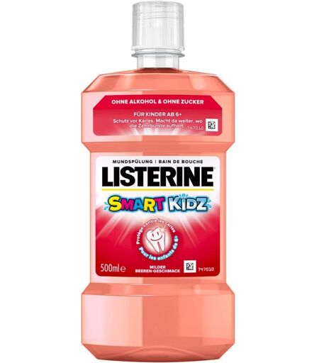 Anwendungsgebiet von Listerine Smart Kidz Beerengeschmack LösungListerine Smart Kidz Beerengeschmack Lösung ist eine Mundspülung für speziell Kinder. Die Mundspülung mit angenehmen Beerengeschmack schützt die Zähne Ihres Kindes vor Karies. Die antibakterielle Mundspülung Smart Kidz® Mild Berry von LISTERINE® macht da weiter wo die Zahnbürste aufhört und schützt vor Karies, für Kinder ab 6 Jahren. Reinigt im gesamten Mundraum, erreicht die Zähne, das Zahnfleisch und die Zunge. Zieht Speisereste an und färbt diese ein, so sieht ihr Kind diese beim Ausspucken im Waschbecken, ohne Alkohol. Enthält Fluorid, das die Zähne stärkt und das Auftreten von Karies bis zu 40% mehr reduziert als Zähneputzen alleine. LISTERINE® wirkt antibakteriell – klinisch geprüft. Dabei bleibt die Mundflora im Gleichgewicht. Wirkstoffe / Inhaltsstoffe / ZutatenListerine Smart Kidz Beerengeschmack Lösung enthält: Aqua, Sorbitol, Aroma, Phosphoric Acid, Sucralose, Cetylpyridinium Chloride, Sodium Fluoride, Menthol, Disodium Phosphate, Benzyl Alcohol, CI 16035, CI 42053. Enthält Natriumfluorid (100 ppm F-) [PR -009760] GegenanzeigenBei bekannter Überempfindlichkeit gegen einen der Inhaltsstoffe sollte dieses Produkt nicht angewendet werden.DosierungAnwendungsempfehlung von Listerine Smart Kidz Beerengeschmack Lösung: Zweimal pro Tag nach dem Zähneputzen verwenden. Geben Sie dazu 10ml (ca. 2 Teelöffel) LISTERINE SMART KIDZ® in ein Glas, 60 Sek. lang spülen, dann ausspucken. Beaufsichtigen Sie Ihr Kind, damit es die Mundspülung nicht herunterschluckt. Kindergesicherter Verschluss. ZUM ÖFFNEN: Verschlusskappe ZUSAMMENDRÜCKEN und DREHEN. ZUM SCHLIESSEN: Verschlusskappe bis zum Einrasten drehen. Listerine Smart Kidz Beerengeschmack Lösung können in Ihrer Versandapotheke www.juvalis.de erworben werden. ...