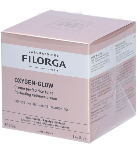 FILORGA OXYGEN-GLOW Creme Sofortige Ausstrahlung mit bloßem Auge - Eine hydra-leuchtende Textur mit Photoperfector HD-Technologie für einen sofort sublimierten Hauteffekt. Für alle Hauttypen. Nicht komedogen. 50ml, erhältlich in 30ml.IndikationenZur Anwendung bei stumpfen Teint, unregelmäßige Hautstruktur, dehydrierte Haut, feine Linien, mangelnde Uniformität.Eine superperfekt wirkende Behandlung, die Fehler in Echtzeit beseitigt und die Ausstrahlung für eine schöne, natürliche Haut sofort erhöht!AnwendungMorgens und abends auf die gereinigte Haut auftragen.IngredientsAQUA (WASSER, WASSER), PROPANDIOL, HYDRIERTE KOKOSNUSS-SÄURE, C15-19 ALKAN, NATRIUMPOLYACRYLAT, DIMETHICON, GLUCONOLACTON, PHENOXYETHANOL, AMMONIUMACRYLOYLDIMETHYLTAURAT/VP-COPOLYMER, HYDROXYETHYLACRYLAT/NATRIUMACRYLOYLDIMETHYLTAURAT-COPOLYMER, HYDROLYSIERTES LUPINENPROTEIN, SYNTHETISCHER FLUORPHLOGOPIT, NATRIUMSTEAROYLGLUTAMAT, CI 77891 (TITANDIOXID), NATRIUMHYDROXID, KOKOS-CAPRYLAT CAPRAT, PARFÜM (DUFTSTOFF), GLYCERIN, CAPRYL/CAPRIC TRIGLYCERID, ETHYLHEXYL-SALICYLAT, CHLORPHENESIN, CETYLPALMITAT, NATRIUMHYALURONAT, POLYSORBAT 80, SORBITSTEARAT, TROPAEOLUM MAJUS BLUMEN-/BLATT-/STÄMMEXTRAKT, BIOSACCHARID-GUMMI-1, BUTYLMETHOXYDIBENZOYLMETHAN, POLYSORBAT 60, SORBIT-ISOSTEARAT, SACCHAROSEPALMITAT, HYDRIERTES POLYDECEN, DIETHYLHEXYL-SYRINGYLIDENMALONAT, ZINNOXID, HYDROXYSTEARSÄURE, GLYCERYL-LINOLAT, NATRIUMBENZOAT, PRUNUS-AMYGDALUS-DULCIS-(SÜßMANDEL-)ÖL, NATRIUMCHLORID, ALUMINIUMOXID, ZITRONENSÄURE, HYDRIERTES LECITHIN, ETHYLHEXYLGLYCERIN, FOLSÄURE, TOCOPHEROL, GLUCOSE, PALMITOYLTETRAPEPTID-10, KALIUMCHLORID, CI 17200 (ROT 33), SUPEROXIDDISMUTASE, KALIUMSORBAT, CALCIUMCHLORID, MAGNESIUMSULFAT, GLUTAMIN, NATRIUMPHOSPHAT, ASCORBINSÄURE, NATRIUMACETAT, LYSIN HCL, ARGININ HCL, ALANIN, HISTIDIN HCL, VALIN, LEUCIN, THREONIN, ISOLEUCIN, TRYPTOPHAN, PHENYLALANIN, TYROSIN, GLYCIN, SERIN, CYSTIN, CYANOCOBALAMIN, GLUTATHION, ASPARAGIN, ASPARAGIN, ASPARAGINSÄURE, ORNITHIN HCL, GLUTAMINSÄURE, NICOTINAMID-ADENIN-DINUKLEOTID, PROLIN, METHIONIN, TAURIN, HYDROXYPROLIN, GLUCOSAMIN HCL, COENZYM A, NATRIUMGLUCURONAT, THIAMINDIPHOSPHAT, RETINYLACETAT, INOSIT, NIACIN, NIACINAMID, PYRIDOXIN HCL, BIOTIN, CALCIUMPANTOTHENAT, RIBOFLAVIN, NATRIUM-TOCOPHERYLPHOSPHAT, THIAMIN HCLInhalt50 ml Tiegel ...