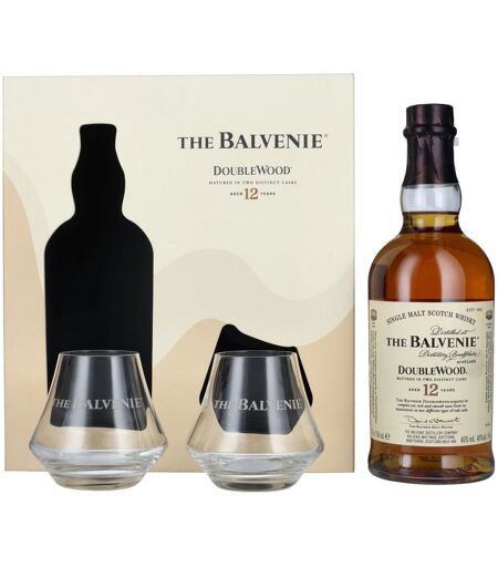 Balvenie Whiskey The Balvenie 12 Years Old Double Wood 40% Vol. 0,7l in Geschenkbox mit 2 Gläsern