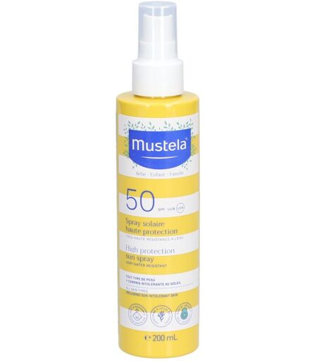 Mustela® Spray Solaire Haute Protection SPF 50 Die Lichtschutzpflege für Babys und Kinder*, schützt empfindliche, sonnenunverträgliche und atopische Haut vor UV-Schäden. Die Vorteile: Hoher Sonnenschutz: SPF 50 gegen UVB UVA. Sehr widerstandsfähig gegen Chlor- und Salzwasser. Gegen Sand beständige Formel. Hohe Verträglichkeit klinisch erwiesen: Schützt empfindliche, sonnenunverträgliche und atopische Haut vor UV-Aggressionen. *Im Falle einer unvermeidbaren Exposition und in Übereinstimmung mit den Empfehlungen der Sonne. Art der Nutzung: Vor der Exposition großzügig und gleichmäßig auftragen, um ein hohes Schutzniveau aufrechtzuerhalten. Alle 2 Stunden und nach jedem Bad auf die trockene Haut und auch bei Schweißbildung erneut auftragen. Setzen Sie kleine Kinder nicht dem direkten Sonnenlicht aus. Vermeiden Sie den Kontakt mit den Augen. Für Gesicht und Körper. Inhaltsstoffe: Aqua/Wasser/Eau, Caprylic/Capric Triglyceride, Dicaprylyl Carbonate, Diethylamino Hydroxybenzoyl Hexyl Benzoate, Bis-ethylhexyloxyloxyphenol Methoxyphenyl Triazine, Glycerin, Ethylhexyl Triazone, Kalium Cetyl Phosphate, 1,2-Hexandiol, Glycerylcaprylat, Persea Gratissima (Avocado) Öl, Tocopherol, Caprylyl Glycol, Helianthus Annuus (Sonnenblume) Samenöl , Tocopherylacetat, Acrylate/c10-30 Alkyl Acrylat Crosspolymer, Persea Gratissima (Avocado) Fruchtextrakt. ...