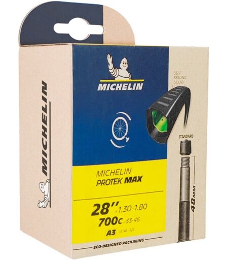 Michelin Protek Max 28x1.30-1.80 Presta 48mm Rohr Michelin Protek Max Kamera verhindert automatisch Luftverlust bei Reifenpannen. Mit seinen Gummiwülsten in der Lauffläche und kreisrunden Noppen an der Seitenwand drückt der Schlauch das durch einen Reifenschaden entstandene Loch zusammen und dichtet es ab. Maße: 28x1,30-1,80 Presta-Ventil 48mm ...