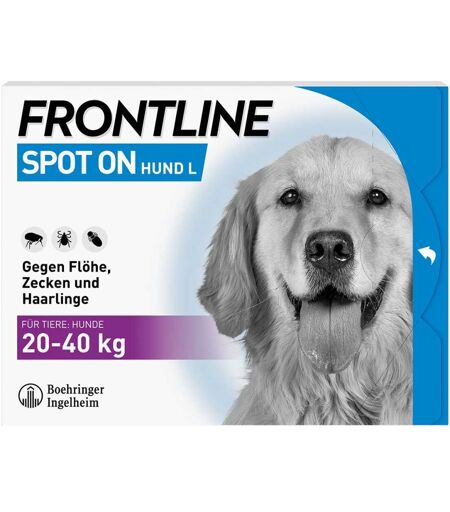 Anwendungsgebiet von FRONTLINE SPOT ON Hund LFRONTLINE SPOT ON Hund L dient der Behandlung von Floh-, Zecken- und Haarlingsbefall sowie der Behandlung und Kontrolle einer Flohstichallergie bei Hunden. Abtötung von Flöhen, wirkt bis zu 8 Wochen Abtötung von Zecken, wirkt bis zu 4 Wochen Abtötung von Haarlingen, wirkt bis zu 4 Wochen Die hier angebotene Lösung ist zur Anwendung bei Hunden mit einen Körpergewicht von 20-40 kg geeignet. Die Vorteile von FRONTLINE SPOT ON Hund L gegen Zecken, Flöhe und Haarlinge auf einen Blick: Wirkt zuverlässig: Zecken, Flöhe und Haarlinge werden wirksam abgetötet Wirkt schützend: Die Wirkung tritt ein, wenn der Parasit die Haut berührt – somit muss es nicht erst zum Stich kommen Wirkt verträglich: Der Wirkstoff wird nur äußerlich auf der Haut und in den Talgdrüsen des Hundes gespeichert FRONTLINE® SPOT ON kann bei Hunden auch zur Behandlung der Flohstichallergie angewendet werden. FRONTLINE® SPOT ON kann bereits bei Hundewelpen ab einem Alter von 12 Wochen und auch bei tragenden oder säugenden Hündinnen angewendet werden. DIE HÄUFIGSTEN FRAGEN RUND UM FRONTLINE® SPOT ON Warum sollte ich meinen Hund gegen Zecken und Flöhe behandeln? Zecken und Flöhe können Infektions- und Hautkrankheiten auslösen, die nicht nur uns Menschen, sondern auch unseren Tieren gefährlich werden können. Typische Parasitenkrankheiten sind Borreliose, FSME oder Bandwürmer, die häufig durch Zecken oder Flöhe übertragen werden. Dabei haben Studien gezeigt, dass mittlerweile jede dritte Zecke die Auslöser der Borreliose-Krankheit in sich trägt – eine Krankheit, die im schlimmsten Fall auch bei Hunden tödlich enden kann. Daher sollten Tierhalter ihre Vierbeiner vorbeugend mit einem Parasitenschutz behandeln. Warum sehe ich nach der Behandlung noch Zecken? FRONTLINE® Spot On macht über 90% der Zecken innerhalb vo ...