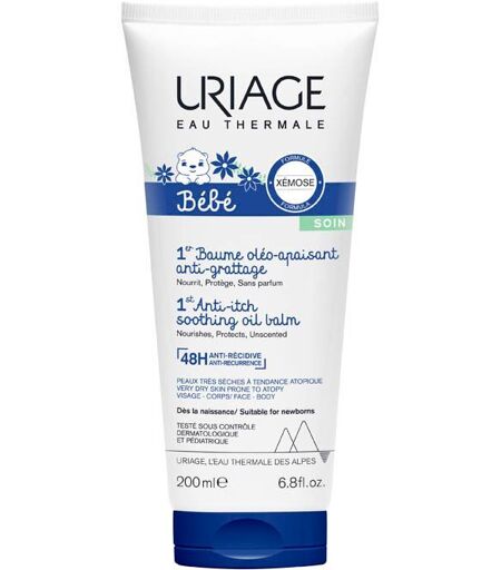 URIAGE Bébé Xémose Öl-Balsam Entdecken Sie das gesamte Fachwissen unserer Xemose-Linie in einer hochverträglichen Babypflege, die sehr trockener, zu Neurodermitis neigender Haut gewidmet ist. Dieser Balsam aus weichmachendem Öl lindert sofort das mit trockener Haut verbundene Jucken und räumt Trockenheitsspitzen aus. Angereichert mit Illipe-Öl hinterlässt er einen nicht fettenden Schutzfilm auf der Haut, sodass Sie sich sofort wohlfühlen und schnell anziehen können.1. LINDERT SOFORTDank seines Chronoxin-Patents lindert es sofort das mit trockener Haut verbundene Juckreizgefühl. 2. NACHHALTIGE ANTI-KRATZ-WIRKUNG Dank der exklusiven Kombination von 2 Patenten (Cerasterol 2F, TLR2 Régul) mit dem Thermalwasser von Uriage hat sie eine dreifache Barrierewirkung, um Trockenheitsspitzen zu vermeiden und die Haut dauerhaft zu beruhigen. 48h Anti-Rückfall. 3. NÄHRT INTENSIV Die Formel enthält Illipe-Öl und Karité-Butter, um die Babyhaut intensiv zu nähren. Anwendung Morgens und/oder abends auf die gereinigte und trockene Haut auftragen.Zusammensetzung AQUA (WATER, WASSER) - C13-15 ALKANE - HYDROGENATED POLYDECENE - BUTYROSPERMUM PARKII (SHEA) BUTTER - CETEARYL ETHYLHEXANOATE - ISONONYL ISONONONANOATE - BEHENETH-25 -BUTYLENE GLYCOL - GLYCERIN - 1,2-HEXANEDIOL - SHOREA STENOPTERA SEED BUTTER - BRASSICA CAMPESTRIS (RAPESEED) STEROLS - CHLORPHENESIN - XANTHAN GUM - ACRYLATES/C10-30 ALKYL ACRYLATE CROSSPOLYLATE CROSSPOLYMER - SODIUM POLYACRYLATE - o-CYMEN-5-OL - TOCOPHERYL ACETATE -RASPBERRY SEED OIL/PALM OIL AMINOPROPANEDIOL ESTERS - SODIUM HYDROXIDE - ASIATICOSIDE - PHYTOSPHINGOSINE - BORAGE SEED OIL AMINOPROPANEDIOL AMIDES - CITRIC ACID ...