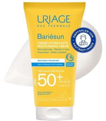 Bariésun kombiniert einen sehr leistungsstarken Filterkomplex und zwei dermatologische Patente, um die Haut zu schützen, Zellschäden und Fotoalterung durch UVA- und UVB-Strahlen sowie blaues Licht zu verhindern. Diese Creme mit sehr hohem Schutz garantiert nach jedem Auftragen ein unsichtbares Finish und Wohlbefinden durch die leichte und angenehm duftende Textur. Diese Creme bietet hohe Sicherheit und hohe Verträglichkeit. Verhindert Zellschäden und Fotoalterung Die von unseren Laboren entwickelte Haut-Schutzschild Technologie kombiniert das Uriage Thermalwasser, einem einzigartigen Wirkstoff, der zum Schutz der DNA beiträgt, und das [TELOMERENSCHUTZ] Patent, das Zellschäden und Fotoalterung durch UV- und Blaulicht verhindert. Optimiert den Fotoschutz Das [BARIÉSUN] Patent bildet einen Schutzschild auf der Haut, um das Eindringen von UV-Filtern auf der Oberfläche der Epidermis zu begrenzen und den Fotoschutz zu optimieren. Verhindert Hauttrockenheit Angereichert mit Aquaspongine und Vitamin E bietet die Creme intensiven Schutz vor Trockenheit und wirkt zugleich anti-oxidativ. UMWELTFREUNDLICHER ANSATZ: Unser Engagement für den Planeten: In Zusammenarbeit mit Forschungseinheiten in Frankreich und Neukaledonien wurden neben Studien zu marinem Plankton einzigartige In-vivo-Studien direkt am Korallenriff durchgeführt, um die Sicherheit der Bariésun Produkte in den Ozeanen zu demonstrieren. Bariésun respektiert Korallen und Ozeane. Die Laboratoires Dermatologiques d'Uriage sind auch Mitglied der 1% for the Planet, einer ethischen Verpflichtung zur Unterstützung von NGOs, die sich für die Umwelt einsetzen, indem wir 1% der weltweiten Gewinne von Bariésun spenden. Umweltfreundliche Verpackung: Tube aus recyceltem Plastik: 10% weniger Neuplastik Kleinere Kappe: 9% weniger Plastik Recycelbare Kartonbox aus nachhaltiger Forstwirtschaft Anwendung Vor dem Aufenthalt in der Sonne, eine ausreichende Produktmenge auf die zu schützende Zone auftragen; zum Beispiel reicht die Menge eines Teelöffels für Gesicht und Hals aus. Geringere Mengen reduzieren erheblich den Schutz. Regelmäßig wiederholen, besonders nach dem Baden, Schwitzen und Abtrocknen. Auch gut geschützt, übermäßiges Sonnenbaden vermeiden. Babys und Kleinkinder nicht direkter Sonnenstrahlung aussetzen. Inhaltsstoffe AQUA (WATER, EAU) - DICAPRYLYL CARBONATE - METHYLENE BIS-BENZOTRIAZOLYL TETRAMETHYLBUTYLPHENOL[NANO] - ETHYLHEXYL TRIAZONE - BUTYL METHOXYDIBENZOYLMETHANE - DIISOPROPYL SEBACATE - PROPYLENE GLYCOL DICAPRYLATE/DICAPRATE - SILICA - C12-15 ALKYL BENZOATE - DIISOPROPYL ADIPATE - BIS[1]ETHYLHEXYLOXYPHENOL METHOXYPHENYL TRIAZINE - TRIACONTANYL PVP - GLYCERIN - C20-22 ALKYL PHOSPHATE - C20-22 ALCOHOLS - DECYL GLUCOSIDE - BUTYLENE GLYCOL - GLUCOSE - XANTHAN GUM - PARFUM (FRAGRANCE) - COCO-GLUCOSIDE - BENZOIC ACID - TETRASODIUM EDTA - COCONUT ALCOHOL - HYDROGENATED POLYDECENE - TOCOPHERYL ACETATE - O-CYMEN-5-OL - TREHALOSE - PROPYLENE GLYCOL - SODIUM HYDROXIDE - CITRIC ACID - ASCORBYL... ...
