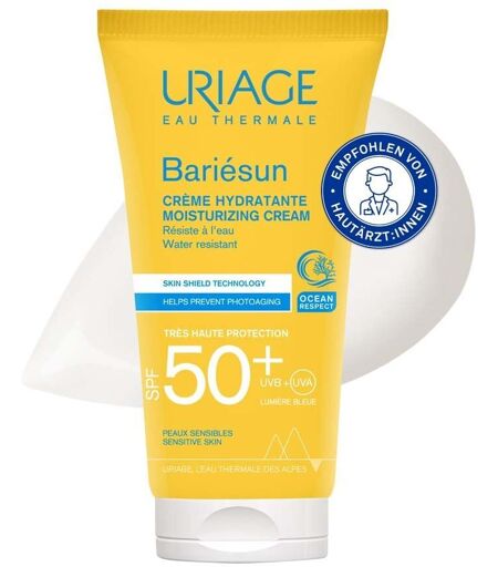 Bariésun kombiniert einen sehr leistungsstarken Filterkomplex und zwei dermatologische Patente, um die Haut zu schützen, Zellschäden und Fotoalterung durch UVA- und UVB-Strahlen sowie blaues Licht zu verhindern. Diese Creme mit sehr hohem Schutz garantiert nach jedem Auftragen ein unsichtbares Finish und Wohlbefinden durch die leichte Textur. Dieses Sonnenschutzprodukt bietet hohe Sicherheit und hohe Verträglichkeit. VERHINDERT ZELLSCHÄDEN UND FOTOALTERUNG Die von unseren Laboren entwickelte Haut-Schutzschild Technologie kombiniert das Uriage Thermalwasser, einem einzigartigen Wirkstoff, der zum Schutz der DNA beiträgt, und das [TELOMERENSCHUTZ] Patent, das Zellschäden und Fotoalterung durch UV- und Blaulicht verhindert. OPTIMIERT DEN FOTOSCHUTZ Das [BARIÉSUN] Patent bildet einen Schutzschild auf der Haut, um das Eindringen von UV-Filtern auf der Oberfläche der Epidermis zu begrenzen und den Fotoschutz zu optimieren. VERHINDERT HAUTTROCKENHEIT Angereichert mit Aquaspongine und Vitamin E bietet das Spray intensiven Schutz vor Trockenheit und wirkt zugleich anti-oxidativ. Anwendung: Vor dem Aufenthalt in der Sonne, eine ausreichende Produktmenge auf die zu schützende Zone auftragen; zum Beispiel reicht die Menge eines Teelöffels für Gesicht und Hals aus. Geringere Mengen reduzieren erheblich den Schutz. Regelmäßig wiederholen, besonders nach dem Baden, Schwitzen und Abtrocknen. Auch gut geschützt, übermäßiges Sonnenbaden vermeiden. Babys und Kleinkinder nicht direkter Sonnenstrahlung aussetzen. 100% Hydratisierte, weiche und geschmeidige Haut Schnelles Einziehen : 100% Geschmeidige Textur : 100% Zusammensetzung: AQUA/EAU URIAGE, DICAPRYLYL CARBONATE, METHYLENE BIS-BENZOTRIAZOLYL TETRAMETHYLBUTYLPHENOL [NANO], ETHYLHEXYL TRIAZONE, BUTYL METHOXYDIBENZOYLMETHANE, PROPYLENE GLYCOL DICAPRYLATE/DICAPRATE, SILICA, C12-15 ALKYL BENZOATE, DIISOPROPYL ADIPATE, BIS-ETHYLHEXYLOXYPHENOL METHOXYPHENYL TRIAZINE, TRIACONTANYL PVP, GLYCERIN, C20-22 ALKYL PHOSPHATE, C20-22 ALCOHOLS, DECYL GLUCOSIDE, BUTYLENE GLYCOL, GLUCOSE, XANTHAN GUM, COCO-GLUCOSIDE, BENZOIC ACID, COCONUT ALCOHOL, HYDROGENATED POLYDECENE, TOCOPHERYL ACETATE, O-CYMEN-5-OL, TREHALOSE, PROPYLENE GLYCOL, SODIUM HYDROXIDE, CITRIC ACID, ASCORBYL TETRAISOPALMITATE, TOCOPHEROL, SPIRULINA PLATENSIS EXTRACT Hersteller: LABORATOIRES DERMATOLOGIQUES D’URIAGE SAS 40-52 Boulevard du Parc 92200 Neuilly-Sur-Seine Frankreich ...