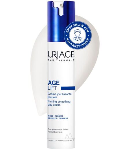 Eine AGE LIFT Innovation: Die dermatologische, straffende Hautpflegeserie, die alle Hauttypen glättet und strafft, selbst empfindliche [3X weniger Falten, 3X straffer]*. Diese straffende, glättende Tagescreme mit einer samtigen Textur wirkt gleichzeitig gegen Falten, Erschlaffung und täglichen Hautaggressionen: Blaues Licht, UV-Strahlung, Umweltverschmutzung, Stress, Müdigkeit. Die Haut ist geschmeidiger, fester und wirkt geglättet. Die Gesichtskonturen sind besser definiert. Die Haut wird lang anhaltend mit Feuchtigkeit versorgt und gewinnt wieder an Ausstrahlung. Anerkannte Anti-Aging Wirkstoffe: [RETINOL** + HYALURONSÄURE + SHEA BUTTER] FALTENKORREKTUR + STRAFFUNG Die Formel ist reich an Anti-Aging Wirkstoffen [Retinol** + Hyaluronsäure] und mildert die Erscheinung von feinen Linien und Falten und bekämpft die mangelnde Hautfestigkeit. ANTI-AGING SCHUTZ Die Haut wird durch die Blue Light Barrier*** Technology vor den schädlichen Auswirkungen von Umweltverschmutzung und blauem Licht geschützt. FEUCHTIGKEITSVERSORGUNG Mit Shea Butter angereicherte Formel für eine geschmeidige und lang anhaltend mit Feuchtigkeit versorgte Haut. HOHE VERTRÄGLICHKEIT Das Uriage Thermalwasser beruhigt alle Hauttypen, selbst empfindliche, und macht sie geschmeidig. UMWELTFREUNDLICHER ANSATZ: VERPACKUNG o Beipackzettel wurden entfernt o Kleinere Verpackung = 4 Tonnen Papier/Karton werden pro Jahr eingespart.**** *Klinische Studie unter dermatologischer Aufsicht an 24 weiblichen Probanden durchgeführt. Einmal tägliche Anwendung der AGE LIFT Tagescreme für 2 Monate. Selbsteinschätzung mit Skala. **Retinylpalmitat ***In vitro Test des Inhaltsstoffes ****AGE LIFT Serie – 2021 Mengen Anwendung Morgens auf das gesamte Gesicht auftragen. Kontakt mit den Augen vermeiden. Normale bis trockene Haut, selbst empfindliche. Sollte ein unangenehmes Prickeln auftreten, den Abstand zwischen den Anwendungen verlängern. Dermatologisch getestet. Nicht während der Schwangerschaft anwenden. Inhaltsstoffe AQUA (WATER, EAU) - DIMETHICONE - CETEARYL ETHYLHEXANOATE - DIGLYCERIN - BUTYROSPERMUM PARKII (SHEA) BUTTER - HYDROGENATED POLYDECENE - ISONONYL ISONONANOATE - LIMNANTHES ALBA SEED OIL (LIMNANTHES ALBA (MEADOWFOAM) SEED OIL) - SQUALANE - DICAPRYLYL CARBONATE - GLYCERIN - BUTYLENE GLYCOL - JOJOBA ESTERS - 1,2-HEXANEDIOL - BORON NITRIDE - STEARETH-2 - STEARETH-21 - ASCORBYL TETRAISOPALMITATE - TOCOPHERYL ACETATE - RETINYL PALMITATE - SODIUM HYALURONATE - CROTON LECHLERI RESIN EXTRACT - TOCOPHEROL - HYDROXYETHYL ACRYLATE/SODIUM ACRYLOYLDIMETHYL TAURATE COPOLYMER - CETYL ALCOHOL - POLYGLYCERIN-3 - PARFUM (FRAGRANCE) - POLYACRYLATE CROSSPOLYMER-6 - CI 77891 (TITANIUM DIOXIDE) - CHLORPHENESIN - CAESALPINIA SPINOSA FRUIT EXTRACT - MICA - o-CYMEN-5-OL - ACACIA DECURRENS FLOWER CERA (ACACIA DECURRENS FLOWER WAX) - HELIANTHUS ANNUUS SEED CERA (HELIANTHUS ANNUUS (SUNFLOWER) SEED WAX) - POLYSORBATE 60 - SORBITAN ISOSTEARATE - KAPPAPHYCUS ALVAREZII EXTRACT - ADENOSINE - THEOBROMA CACAO SEED EXTRACT... ...