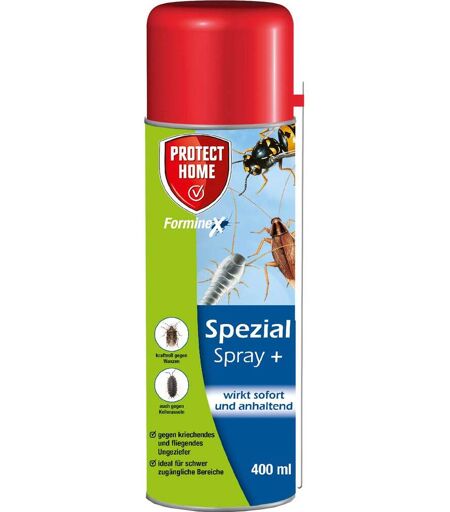 Protect Home FormineX Ungezieferspray + 400 ml Produktnummer: 0688501683 Das FormineX Spezialspray + wirkt gegen versteckt lebendes Ungeziefer (Schaben, Ameisen, Silberfischchen, Heimchen, Kellerasseln, Wanzen, Vogel- und Hühnermilben, Bettwanzen, Zecken u.a.) sowie Wespen (Deutsche & Gemeine Wespe) in versteckt sitzenden Nestern (in Hohlräumen, Wandverkleidungen, Rollladenkästen etc.). Aber auch gegen Fliegen, Motten, und andere fliegende Insekten einsetzbar, wenn sie sich bevorzugt auf Oberflächen aufhalten. Sofort- und Langzeitwirkung gegen kriechendes und fliegendes Ungeziefer Sprühröhrchen für Öffnungen und Fugen bekannt und bewährt Anwendungsbereich: Innen- und Außenbereich Wirkstoffe: Prallethrin und Cyphenothrin Inhalt: 400 ml Herstellerinformationen: SBM Life Science GmbH Raiffeisenstrasse 15a 40764 Langenfeld, Deutschland eMail: de.info@sbm-company.com Herstellernr. 86601234 Verbraucherhinweise Gefahrenhinweise Sehr giftig für Wasserorganismen, mit langfristiger Wirkung.Behälter steht unter Druck: kann bei Erwärmung bersten.Extrem entzündbares Aerosol. Sicherheitshinweise Nicht durchstechen oder verbrennen, auch nicht nach Gebrauch.Inhalt/Behälter in Übereinstimmung mit örtlichen Vorschriften der Entsorgung zuführen.Von Hitze, heissen Oberflächen, Funken, offenen Flammen und anderen Zündquellen fernhalten. Nicht rauchen.Freisetzung in die Umwelt vermeiden.Ist ärztlicher Rat erforderlich, Verpackung oder Kennzeichnungsetikett bereithalten.Darf nicht in die Hände von Kindern gelangen.Vor Sonnenbestrahlung schützen. Nicht Temperaturen über 50 °C/ 122 °F aussetzen.Ausgetretene Mengen auffangen.Nicht gegen offene Flamme oder andere Zündquelle sprühen. Hinweis: Biozidprodukte vorsichtig verwenden. Vor Gebrauch stets Etikett und Produktinformation lesen. Biozid Registrier-/Zulassungsnummer: N-100942 ...