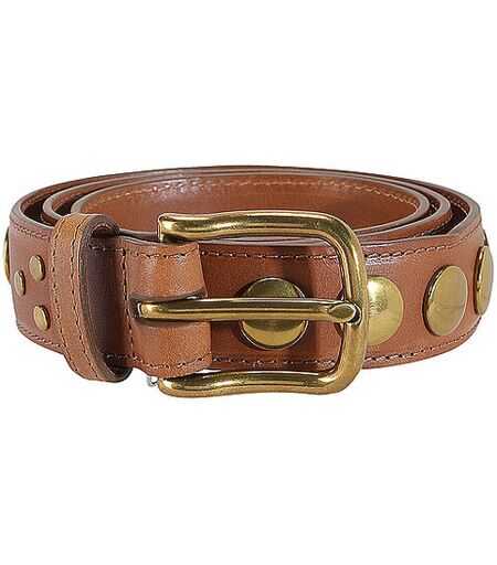 Damen Gürtel aus glattem Leder Schließt mit Dornschnalle Nieten Besatz Unifarben Breite: ca. 3cm Farbbezeichnung: Chene Material: 100% Leder ...