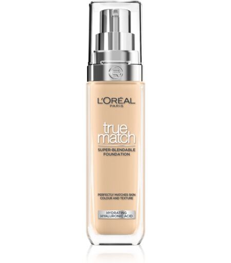L’Oréal Paris True Match, 30 ml, Foundation Make-up für Damen, Ein makelloser Teint ist die Grundlage jedes Make-up-Looks, egal ob es sich um einen gewagten Abendlook oder einen sehr natürlichen Tageslook handelt. Und genau das erreichen Sie mit der Foundation L’Oréal Paris True Match . Sie verschmilzt perfekt mit Ihrer Haut und sorgt für eine perfekte Vereinheitlichung ihres Hauttons. Dank der Deckkraft deckt sie kleine Hautmakel wie Pigmentflecken, Rötungen oder Aknemale sofort ab. Im Handumdrehen kreieren Sie ein farblich einheitliches Hautbild, das eine hervorragende Grundlage für jedes weitere Make-up bildet. Eigenschaften: vereinheitlicht den Farbton der Haut passt die Farbe der Haut an macht die Haut elastisch und zart glättet die Hautoberfläche mit Langzeiteffekt Anwendung: Tragen Sie das Make-up mit sanften Zügen mit den Fingern, einem Schwämmchen oder einem Pinsel auf das Gesicht auf und verteilen Sie es gründlich. Sie können verschiedene Farbtöne kombinieren. ...