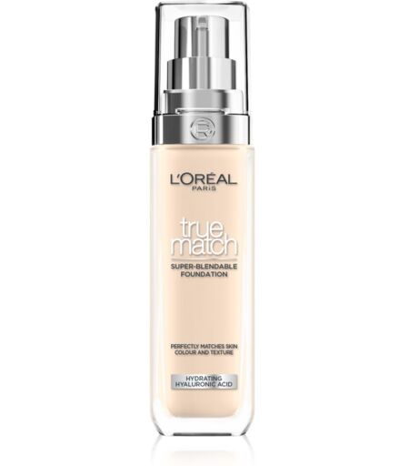 L’Oréal Paris True Match, 30 ml, Foundation Make-up für Damen, Ein makelloser Teint ist die Grundlage jedes Make-up-Looks, egal ob es sich um einen gewagten Abendlook oder einen sehr natürlichen Tageslook handelt. Und genau das erreichen Sie mit der Foundation L’Oréal Paris True Match . Sie verschmilzt perfekt mit Ihrer Haut und sorgt für eine perfekte Vereinheitlichung ihres Hauttons. Dank der Deckkraft deckt sie kleine Hautmakel wie Pigmentflecken, Rötungen oder Aknemale sofort ab. Im Handumdrehen kreieren Sie ein farblich einheitliches Hautbild, das eine hervorragende Grundlage für jedes weitere Make-up bildet. Eigenschaften: vereinheitlicht den Farbton der Haut passt die Farbe der Haut an macht die Haut elastisch und zart glättet die Hautoberfläche mit Langzeiteffekt Anwendung: Tragen Sie das Make-up mit sanften Zügen mit den Fingern, einem Schwämmchen oder einem Pinsel auf das Gesicht auf und verteilen Sie es gründlich. Sie können verschiedene Farbtöne kombinieren. ...