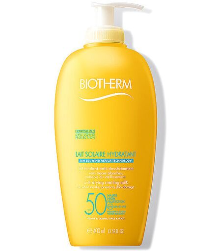 Waterlover Hydrating Sun Milk SPF50 verwöhnt die Haut mit ihrer sinnlichen Textur, die keine weißen Spuren hinterlässt. Die zartschmelzende Sonnenpflege von Biotherm bietet mit Lichtschutzfaktor 50 einen zuverlässigen Schutz vor UV-A- und UV-B-Strahlen – für Gesicht und Körper. Hydration Sonnenschutz Erfrischt Anwendung: Vor dem Sonnenbaden auftragen. ACHTUNG: Intensive Mittagssonne vermeiden. Vor dem Sonnen auftragen. Mehrfach auftragen, um den Lichtschutz aufrechtzuerhalten, insbesondere beim Schwitzen oder nach dem Schwimmen und Abtrocknen. Sonnenschutzmittel großzügig auftragen. Geringe Auftragsmengen reduzieren die Schutzleistung. Babys und Kleinkinder vor direkter Sonneneinstrahlung schützen. Für Babys und Kleinkinder schützende Kleidung sowie Sonnenschutzmittel mit hohem Lichtschutzfaktor (LSF größer als 25) verwenden. Auch Sonnenschutzmittel mit hohen Lichtschutzfaktoren bieten keinen vollständigen Schutz vor UV-Strahlen. Bei Augenkontakt sofort und gründlich ausspülen. Kontakt mit Textilien vermeiden. ...