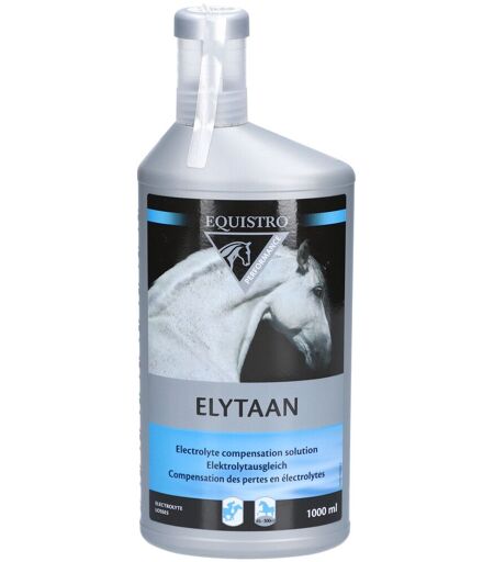 EQUISTRO® Elytaan Elytaan ist ein einzigartiges, flüssiges Diät-Ergänzungsfuttermittel für Pferde zum Ausgleich von Elektrolytverlusten bei übermäßigem Schwitzen. Es ist reich an Elektrolyten, hoch verfügbaren Spurenelementen (Ipaligo®), B-Vitaminen und essentiellen Aminosäuren. Elytaan hilft, den Elektrolytverlust durch starkes Schwitzen als Folge intensiver körperlicher Anstrengung während Training und Wettkampf auszugleichen und unterstützt die anschließende wichtige Erholungsphase. Fütterungshinweis: Pferde (500 kg): 20 - 40 ml pro Tag Fohlen/Ponys 10 - 20 ml pro Tag Mit dem Futter, Trinkwasser oder per Maulspritze geben. Es sollte immer ausreichend frisches Wasser zur Verfügung stehen. Zusammensetzung Saccharose 28,6%, Magnesiumchlorid 18,7%, Natriumchlorid 8,4%, Kaliumchlorid 2,0%, Calciumchlorid 1,0%. Analytische Bestandteile: Feuchtigkeit 53%, Rohasche 17,5%, Chlorid 14,0%, Natrium 3,6%, Glukose 2,9%, Magnesium 2,1%, Kalium 1,2%, Rohprotein 0,9%, Rohfett 0,8%, Calcium 0,43%, Rohfaser 0,3%. ...