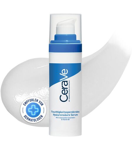 Feuchtigkeitsspendendes Hyaluronsäure Serum mit 3 essenziellen Ceramiden und Vitamin B5 – für bis zu 24 Stunden intensive Feuchtigkeitsversorgung! CeraVe Hyaluronsäure Serum: 24 Stunden Feuchtigkeit für normale bis trockene Haut Das Gesichtsserum mit Hyaluron bindet eine große Menge an Wasser auf der Haut und versorgt so trockene Haut bis zu 24 Stunden lang mit wichtiger Feuchtigkeit. Die Haut wirkt sofort geglättet und Trockenheitsfältchen werden gemildert – für einen strahlenden, erfrischten Teint. Gesichtsserum mit Hyaluron, Ceramide und Vitamin B5 – für eine gestärkte Hautschutzbarriere Die leichte Formulierung mit Hyaluron, 3 essenziellen Ceramiden und Vitamin B5 spendet trockener bis normaler Haut nicht nur intensive Feuchtigkeit, sondern stärkt auch zugleich die natürliche Hautschutzbarriere. So kann sich die Haut besser vor äußeren Einflüssen schützen und wird vor dem Austrocknen bewahrt. Das Hyaluron Serum bietet daher die optimale Feuchtigkeitspflege für jeden Tag. Besondere Eigenschaften des Feuchtigkeitsspendenden Hyaluronsäure Serums von CeraVe: Feuchtigkeitsserum mit Hyaluronsäure für eine glattere Haut Drei essenzielle Cereamide und Vitamin B5 helfen, die natürliche Hautschutzbarriere zu stärken und wiederherzustellen Die Haut wird bis zu 24 Stunden lang mit intensiver Feuchtigkeit versorgt und so vor dem Austrocknen geschützt Das Serum eignet sich für trockene bis normale Haut und zieht dank der Gel-Textur schnell ein Anwendung und Pflegeroutine: Das CeraVe Feuchtigkeitsspendende Hyaluronsäure Serum kann täglich morgens oder abends angewendet werden. Eine kleine Menge des Hyaluron Serums auf die Handinnenfläche geben und mit den Fingerspitzen sanft auf die gereinigte Haut von Gesicht, Hals und Dekolleté verteilen. Das Gesichtsserum kann allein oder unter einer Feuchtigkeitscreme aufgetragen werden. Dank der leichten, nicht fettenden Gel-Textur zieht das Feuchtigkeitsserum schnell ein und hinterlässt einen strahlenden Teint. Zusammensetzung: 2021569 17 - INGREDIENTS: AQUA / WATER • GLYCERIN • CETEARYL ETHYLHEXANOATE • CETEARYL ALCOHOL • DIMETHICONE • SODIUM HYALURONATE • PANTHENOL • POLYACRYLATE CROSSPOLYMER-6 • CERAMIDE NP • CERAMIDE AP • CERAMIDE EOP • CARBOMER • CETEARYL GLUCOSIDE • BEHENTRIMONIUM METHOSULFATE • SODIUM HYDROXIDE • SODIUM LAUROYL LACTYLATE • CHOLESTEROL • PHENOXYETHANOL • ISOPROPYL MYRISTATE • CAPRYLYL GLYCOL • CITRIC ACID • TRISODIUM ETHYLENEDIAMINE DISUCCINATE • XANTHAN GUM • PHYTOSPHINGOSINE • ETHYLHEXYLGLYCERIN (F.I.L. Y286190/1).Hersteller: 62, Quai Charles Pasqua 92300 Levallois-Perret France fragen@loreal-group.com*Gutschein gültig bei Online-Bestellung ab dem genannten Mindestbestellwert (ausgenommen preisgebundene Bücher, verschreibungspflichtige Produkte, Artikel von Drittanbietern (Marktplatz Partnern) sowie bei einer Now!-Lieferung)) für die folgenden Produkte des Herstellers L'Oreal Deutschland GmbH: 18168763, 18386632, 18029926, 14017671, 14017493, 18848127, 14017642, 17572901, 14408839, 14017553,... ...