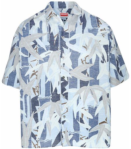 Herren Hemd aus Baumwoll-Leinen-Mischung Cubakragen Schließt mit Knopfleiste Kurzarm Überschnittene Schultern Floraler Alloverprint mit Logo-Details Lockere Passform Farbbezeichnung: Midnight Blue Material: 62% Baumwolle, 38% Leinen ...