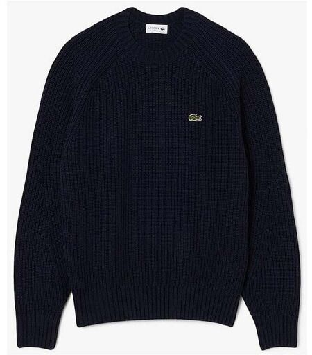 Herren Pullover aus Strick Rippstrick-Muster Rundhalsausschnitt Raglanärmel Langarm Gerade geschnitten Logo an der Brust Unifarben Farbbezeichnung: Navy Material: 100% Wolle ...