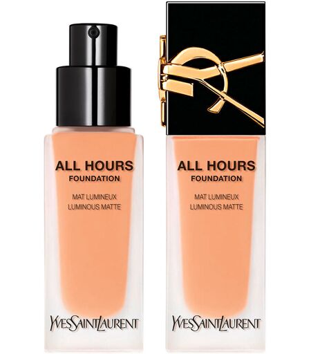 Die ALL HOURS FOUNDATION von Yves Saint Laurent Beauty vereint bis zu 24H volle Deckkraft und leichten Tragekomfort - ohne Kompromisse. Sie schenkt zu jedem Zeitpunkt einen strahlend mattierten Look. Die innovative Formel verleiht eine fühlbar weiche, glatte und gepflegte Haut. Die wasserfeste und atmungsaktive Foundation mit Hyaluron ist spürbar feuchtigkeitsspendend und legt sich federleicht auf die Haut. Sie deckt Glanz zuverlässig und langanhaltend ab und lässt die Haut strahlen. Anwendung: Geben Sie einige Tropfen der ALL HOURS FOUNDATION von Yves Saint Laurent Beauty auf Ihren Handrücken. Nutzen Sie entweder einen Make-up-Pinsel, Finger oder Schwämmchen, um die Foundation zu verteilen. Tupfen Sie dazu die Foundation auf die Stirn, Wangen, Nase sowie das Kinn. Verblenden Sie anschließend die matte Foundation von der Gesichtsmitte nach außen hin. Dabei darauf achten, dass die Foundation insbesondere am Hals, den Ohren und dem Haaransatz gut verblendet wird. ...