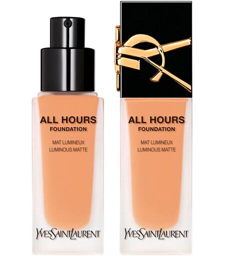 Die ALL HOURS FOUNDATION von Yves Saint Laurent Beauty vereint bis zu 24H volle Deckkraft und leichten Tragekomfort - ohne Kompromisse. Sie schenkt zu jedem Zeitpunkt einen strahlend mattierten Look. Die innovative Formel verleiht eine fühlbar weiche, glatte und gepflegte Haut. Die wasserfeste und atmungsaktive Foundation mit Hyaluron ist spürbar feuchtigkeitsspendend und legt sich federleicht auf die Haut. Sie deckt Glanz zuverlässig und langanhaltend ab und lässt die Haut strahlen. Anwendung: Geben Sie einige Tropfen der ALL HOURS FOUNDATION von Yves Saint Laurent Beauty auf Ihren Handrücken. Nutzen Sie entweder einen Make-up-Pinsel, Finger oder Schwämmchen, um die Foundation zu verteilen. Tupfen Sie dazu die Foundation auf die Stirn, Wangen, Nase sowie das Kinn. Verblenden Sie anschließend die matte Foundation von der Gesichtsmitte nach außen hin. Dabei darauf achten, dass die Foundation insbesondere am Hals, den Ohren und dem Haaransatz gut verblendet wird. ...
