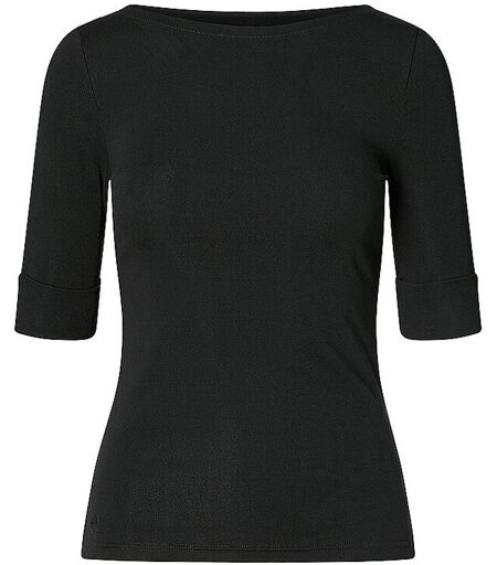 Damen T-Shirt aus Jersey U-Boot-Ausschnitt Halbärmel Schmal geschnitten Unifarben Farbbezeichnung: Polo Black Material: 94% Baumwolle, 6% Elasthan ...