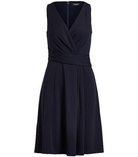 Damen Cocktailkleid aus leichtem Stretch V-Ausschnitt Ärmellos Mit Raffung Unifarben Farbbezeichnung: Lighthouse Navy Länge: ca. 100cm Material: 94% Polyester, 6% Elasthan ...