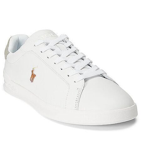 Der Heritage Court II, inspiriert von den Schuhen ehemaliger Tennislegenden, besticht durch eine Zwischensohle aus EVA-Doppelwerkstoff und eine Gummicupsohle mit integrierter Fersenstütze. Diese Ledervariante wird durch das ikonische Polo Ralph Lauren-Logo und das charakteristische Pony-Emblem stilvoll akzentuiert. Herren Sneaker aus hochwertigem Leder Runde Schuhspitze Schnürung vorne Gepolsterte Einlegesohle Verstärkter Fersenbereich mit kontrastierender Fersenlasche Charakteristisches geprägtes Pony an der Seite „Polo“-Schriftzug als erhabene Prägung an der Lasche und eingeprägt an der Ferse EVA-Zwischensohle Strukturierte Außensohle aus Gummi Farbbezeichnung: White / Grey Material: Leder Futter: Polyester, Elasthan Sohle: Gummi ...