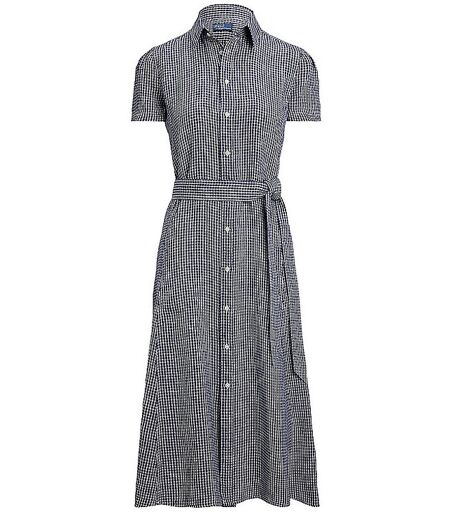 Damen Midikleid aus Leinen Hemdblusenkragen Kurzarm Schließt mit Knopfleiste Taillierte Passform Seitliche Eingriffstaschen Bindegürtel an der Taille Karomuster Länge: ca. 120cm Midilänge Farbbezeichnung: Blue/White Material: 100% Leinen ...