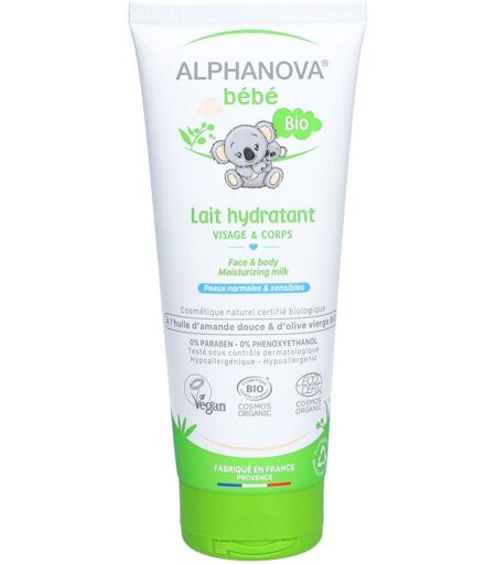 ALPHANOVA® bébé Feuchtigkeitsmilch für Gesicht und Körper bio Die feuchtigkeitsspendende Milch für Gesicht und Körper ist eine Pflege für Babys bei starker Trockenheit. Speziell für atopische und raue Haut, die durch Kälte geschädigt wird. Diese neue Formel natürlichen Ursprungs ist bio-zertifiziert und mit Bio-Olivenöl und Bio-Süßmandelöl formuliert. Diese Babypflege ist sehr sanft und ohne giftige Substanzen, parabenfrei und phenoxyethanolfrei. Die feuchtigkeitsspendende Milch ist hypoallergen und unter dermatologischer Aufsicht getestet. Anwendung: Auf den Körper oder das Gesicht auftragen und sanft einmassieren. Ingredients: Aqua, Cetearyl alcohol, Butyrospermum parkii butter*, Anthemis nobilis flower water*, Olea europaea fruit oil*, Glycerin, Stearyl alcohol, Prunus amygdalus dulcis oil*, Cetearyl glucoside, Aloe barbadensis leaf juice powder*, Gossypium herbaceum extract*, Bisabolol*, Parfum, Xanthan gum, Glucose, Glyceryl caprylate, Helianthus annuus seed oil, Tocopherol, Sodium benzoate, Sodium levulinate, Potassium sorbate, Benzoic acid, Levulinic acid, Citric acid. *Zutat aus biologischem Anbau: 99,6 % der Gesamtmenge sind natürlichen Ursprungs. 22,9 % der gesamten Inhaltsstoffe stammen aus biologischem Anbau. ...