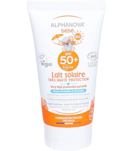 ALPHANOVA® bébé Bio-Sonnenmilch für Babys LSF 50+ Diese Bio Sonnencreme für Babys wird aus natürlichen Inhaltsstoffen hergestellt. Sie enthält keinen Alkohol, keine Duftstoffe und kein Phenoxyethanol. Es ist der perfekte Sonnenschutz für die empfindliche Haut eines Babys. Alle unsere Babypflegeprodukte sind hypoallergen und dermatologisch getestet. Aus ökologischer Sicht respektiert seine Zusammensetzung, ohne chemische Filter, ohne Parabene und ohne chemische Konservierungsstoffe, die Umwelt. Die Baby-Sonnencreme kann im Wasser verwendet werden, ohne eine Verschmutzung zu verursachen. Indem Sie eine zertifizierte Bio-Baby-Sonnencreme verwenden, treffen Sie die beste Wahl für Ihr Kind und für den Planeten. Anwendung: Tragen Sie die Sonnencreme für Ihr Baby großzügig und gleichmäßig auf, und vergessen Sie nicht, sie nach dem Schwimmen oder Abtrocknen erneut aufzutragen. Vermeiden Sie es, Ihre Kinder der Sonne auszusetzen, insbesondere zwischen 11 und 15 Uhr, und denken Sie daran, sie mit einem T-Shirt, einem Hut und einer Sonnenbrille zu bedecken. Ingredients: Aqua, Dicaprylyl Carbonate, Titanium Dioxide [nano]**, Glycerin, Caprylic/Capric Triglyceride, Simmondsia Chinensis Seed Oil*, Polyglyceryl-3 Diisostearate, Coconut Alkanes, Polyglyceryl-2 Dipolyhydroxystearate, Polyhydroxystearic Acid, Stearic Acid, Calophyllum Inophyllum Seed Oil*, Magnesium Sulfate, Sodium Chloride, Xanthan Gum, Aluminum Hydroxide, Aloe Barbadensis Leaf Juice Powder*, Sodium Levulinate, Glyceryl Caprylate, Alumina, Coco-Caprylate/Caprate, Sodium Anisate, Citric Acid, Tocopherol *Zutaten aus biologischem Anbau. 98,8% der Gesamtmenge sind natürlichen Ursprungs. 34,5% der gesamten Inhaltsstoffe stammen aus biologischem Anbau COSMOS ORGANIC zertifiziert von ECOCERT Greenlife. ...