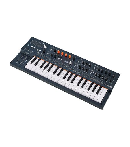 Arturia MiniFreak; Algorithmic Synthesizer; 37 anschlagdynamische Slim-Tasten mit Aftertouch; 6-stimmige Polyphonie; pro Stimme zwei digitale Sound-Engines mit 30 wählbaren Oszillator-Modi (Superwave, Wavetable, Karplus Strong, Noise und vieles mehr); umfangreiche Modulationsmöglichkeiten inkl. FM, Ringmodulation und gegenseitiger Beeinflussung der Sound-Engines; pro Stimme: ADSR-Hüllkurve, Multisegment-Hüllkurve/-LFO, zwei LFOs und analoges Multimode-Filter (Tiefpass, Bandpass, Hochpass); Modulationsmatrix mit 7 Quellen und 13 Zielen; 3 Effekt-Slots (als Insert- oder Send-Effekt) mit 10 Effekt-Typen; Performance-Arpeggiator mit Ratcheting und Random-Funktionen; Step-Sequencer mit 64 Steps; intuitive Bedienung über OLED-Display sowie 40 Drehreglern, Encodern und Taster; Speicherplätze für 320 Factory- und 256 User-Presets; Stereo Line-Ausgang (2x 6.3mm Klinke); Line-Eingang (6.3mm Klinke); Stereo-Kopfhörerausgang (6.3mm Klinke); Sustain-Pedal Anschluss (6.3mm Klinke); Clock Eingang/Ausgang und Reset-Ausgang (3.5mm Klinke); MIDI In/Out/Thru; USB-B Port; Abmessungen (BxTxH): 578 x 231 x 55mm; Gewicht: 2,94kg; inkl.: externes Netzteil (12V DC, 1A), USB-Kabel, MiniFreak V Software (Download) ...