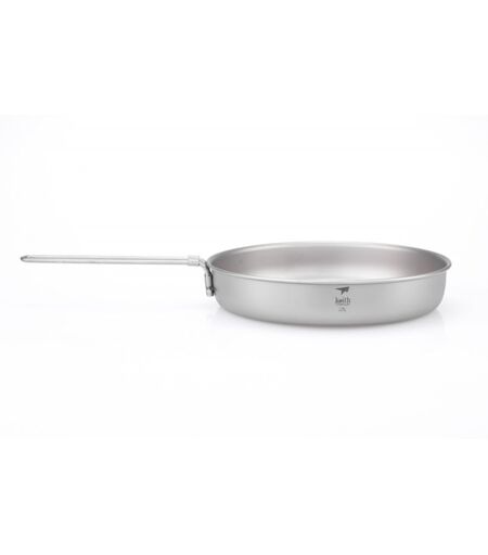 Die Keith Titanium Fry Pan besitzt bis zur Oberkante gemessen ein Füllvolumen von 1 Liter und ist damit nicht nur für minimalistische Outdoormahlzeiten geeignet. Mit ihrem Klappgriff lässt sie sich platzsparend im Gepäck verstauen, ohne zu Verhaken. Mit ihrem großzügigen Durchmesser von 21 cm ist sie auch als Teller bequem nutzbar und der recht hohe Rand von 3,5 cm verhindert, dass das Essen bei der kleinsten Schwankung gleich zu Boden fällt. Wie jedes unbeschichtete Kochgeschirr aus Titan, besitzt jedoch auch die Keith Titanium Fry Pan den kleinen Nachteil, dass sie eine eher schlechte Wärmeleitfähigkeit besitzt. Dadurch kann das Material beim Kochen punktuell sehr heiß werden, da sich die Wärme nicht so schnell gleichmäßig verteilt, was schneller dazu führt, dass dein Essen anbrennen kann. Mit häufigem Wenden und reichlich Öl lässt sich dieser Effekt jedoch recht gut in den Griff bekommen. Dafür besitzt die Keith Titanium Fry Pan den großen Vorteil, dass sie nicht rostet, keinen Geschmack annimmt oder abgibt, nicht mit Säuren oder Salzen reagiert und vor allem ultraleicht ist. So kannst du dein Kochgeschirr für den Outdoor Einsatz deutlich erleichtern und dir unterwegs vielseitige Gerichte zubereiten. ...