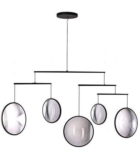 Die DCWéditions Focus LED Pendelleuchte ist ein Meisterwerk. Sie ist vielleicht das beeindruckenste Mobile das man im Haus haben kann. Man kennt ein Mobile eigentlich aus dem Kinderzimmer. Diese sind jedoch klein und haben einfache und kleine Schwebekörper. Hier sind die Schwebekörper deutlich größer. Doch damit nicht genug. Diese hier können sogar leuchten. Dazu befinden sich in jedem Schwebekörper LEDs und Linsen die das Bild dahinter verzerren füllen die Ringe aus. Fast frei schwebend und drehbar gibt es unendlich viele Positionen die Schwebekörper anzuordnen. Dieses Mobile spendet nicht nur angenehmes Licht, sondern wirkt auch beruhigend. Dies wird durch die lansamen Bewegungen der Ringe erreicht die durch langsame Bewegungen der Luft erzeugt werden. Aber natürlich kann man auch selbst Hand anlegen und die Ringe bewegen. Bei der Focus LED Pendelleuchte von DCWéditions kommen nur leic... ...