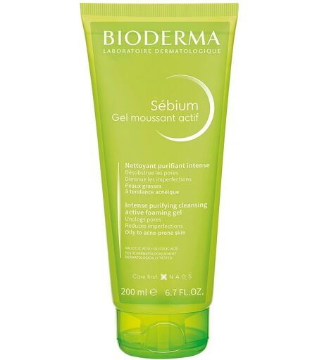 Anwendungsgebiet von Bioderma Sebium Gel Moussant Actif ReinigungsgelBioderma Sebium Gel Moussant Actif Reinigungsgel reinigt porentief, reduziert Unreinheiten und macht die Haut geschmeidig. Das schäumende Gel beseitigt überschüssigen Talg und reinigt die Epidermis. Seine ultra-sanfte Formel ist die perfekte Balance aus Wirksamkeit und Verträglichkeit. Ideal geeignet bei öliger Haut mit Unreinheiten bis zu Akne neigender Haut.Wirkungsweise von Bioderma Sebium Gel Moussant Actif ReinigungsgelBioderma Sebium Gel Moussant Actif Reinigungsgel garantiert eine aktive Reinigung durch zwei enthaltende Säuren–Glykolsäure (AHA) 1%, Salicylsäure (BHA) 1,8%. Es fördert die sanfte Abschuppung der abgestorbenen Hautzellen und Verhornungen und öffnet verstopfte Poren. Das enthaltende Zinkgluconat (3%) reduziert den Talg. Sébium Gel moussant actif basiert nur auf einer milden Reinigungsbasis und respektiert so die Haut. Die BIODERMA Zuckergrundlage D.A.F. ist eine Kombination aus drei biomimetischen, beruhigenden Zuckern, die den Entzündungsprozess verhindern.Wirkstoffe / Inhaltsstoffe / ZutatenInhaltsstoffe von Bioderma Sebium Gel Moussant Actif Reinigungsgel:
