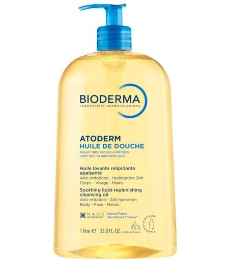 Anwendungsgebiet von BIODERMA Atoderm Huile De DoucheDas beruhigende rückfettende BIODERMA Atoderm Huile De Douche ist ein mildes Reinigungsöl, das die Haut intensiv pflegt, nährend wirkt und Spannungsgefühle lindert. Das beruhigende Reinigungsöl ist geeignet für die Gesichts- und Körperhaut der ganzen Familie (außer Frühgeborene). Ideal bei sehr trockener, zu Neurodermitis neigender, empfindlicher Haut.Wirkungsweise von BIODERMA Atoderm Huile De DoucheDer enthaltene patentierte Wirkstoff SKIN BARRIER THERAPY (Zuckerester) hemmt effektiv das Wachstum von juckreizauslösenden Bakterien (Staphylococcus aureus) und bringt somit die Hautflora wieder ins Gleichgewicht. Vitamin B3 (Niacinamid) regt die Produktion von Lipiden und Proteinen an und stellt eine intakte Hautbarriere her. Pflanzliche Biolipide wirken beruhigend und nähren die Haut. Atoderm Huile de douche enthält, wie alle BIODERMA Produkte, 9-fach gereinigtes Wasser, welches dem Zellwasser in unseren Hautzellen sehr ähnlich und somit höchst verträglich ist. Die BIODERMA Zuckergrundlage D.A.F. ist eine Kombination aus drei biomimetischen, beruhigenden Zuckern, die den Entzündungsprozess verhindern.Wirkstoffe / Inhaltsstoffe / ZutatenInhaltsstoffe von BIODERMA Atoderm Huile De Douche: AQUA / WATER / EAU, GLYCERIN, PEG-7 GLYCERYLCOCOATE, SODIUM COCOAMPHOACETATE, LAURYLGLUCOSIDE, COCO-GLUCOSIDE, GLYCERYL OLEATE,CITRIC ACID, PEG-90 GLYCERYL ISOSTEARATE, FRAGRANCE(PARFUM), MANNITOL, POLYSORBATE 20,XYLITOL, LAURETH-2, RHAMNOSE, NIACINAMIDE,FRUCTOOLIGOSACCHARIDES, TOCOPHEROL, HYDROGENATEDPALM GLYCERIDES CITRATE, LECITHIN,ASCORBYL PALMITATE. [BI 725]GegenanzeigenBei bekannter Überempfindlichkeit gegenüber einem der oben genannten Inhaltsstoffe sollte dieses Produkt nicht angewendet werden.DosierungAnwendungsempfehlung für BIODERMA Atoderm Huile De Douche: Zur Anwendung für Gesicht und Körper geeignet. Für die ganze Familie geeignet (außer Frühgeborene). Bei Bedarf Atoderm Hu ...