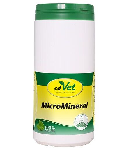 Ergänzungsfuttermittel für Hunde und KatzencdVet MicroMineral enthält 100% rein natürliche Zutaten wie Algen, Algenkalk, Traubenkernextrakt und Bierhefe, welche reich an natürlichen, leicht verfügbaren Mikronährstoffen, wie Mineralien, Spurenelementen, Vitaminen, etc. sind. Durch ihren pflanzlichen Ursprung werden die Entgiftungsorgane nicht weiter belastet, wodurch eine optimale, naturbelassene Mikronährstoffversorgung mit Calcium, Magnesium, einem gesamten Komplex an lebensnotwendigen Spurenelementen und Alginaten somit ermöglicht wird. Insbesondere bei der Fütterung von Fertigfutter entsteht schnell eine Mangelsituation, weil durch die industrielle und thermische Verarbeitung viele Stoffe beschädigt, verändert bzw. zerstört werden. Synthetische Stoffe können diesen Mangel nicht komplett beheben. Daher sollte cdVet MicroMineral in keiner Fütterung fehlen.Als Zusatz zur Trockennahrung, Dosenfleisch und auch bei der Frischfleischfütterung, zur natürlichen Mineralisierung und Vitaminabsicherung.Auf optimale Mikronährstoffversorgung ist besonders zu achten:im Wachstum im Fellwechsel im Training und Wettkampfeinsatz im Zuchteinsatz bei Stress bei Fell- und Hautproblemen bei älteren Tieren bei Stoffwechselproblemen und AllergienMögliche Folgen von Spurenelement- und Mikronährstoffmangel:Probleme beim Fellwechsel schuppige Haut glanzloses Fell Entwicklungsverzögerung Degeneration von Knochen und Gelenken geschwächtes Immunsystem frühzeitige Alterserscheinungen Stressanfälligkeit GeburtsschwierigkeitenExpertentipp: Eine gestörte Darmflora ist oft eine weitere Ursache für Mangelerscheinungen. Daher ist eine 14-tägige Intensivfütterung mit cdVet DarmRein zu empfehlen. Weitere Anzeichen für einen Mangel in der Fütterung sind z.B. Unrat fressen (wie Dreck, Exkremente usw.) und ein verzögerter Fellwechsel.Eine optimale Versorgung mit Mineralstoffen, Spurenelementen und Vitaminen unterstützt die physiologischen Organfunktionen und Stoffwechselvorgänge und ist Voraussetzung für ein gesundes Leben.Mineralergänzungsfuttermittel für Hunde & KatzenZusammensetzung:Algenkalk, Bierhefe, Malzkeime, Algen, Traubenkerne extrahiertAnalytische Bestandteile und Gehalte: Calcium 18,3%, Magnesium 1,25%, Kalium 0,65%,Phosphor ...
