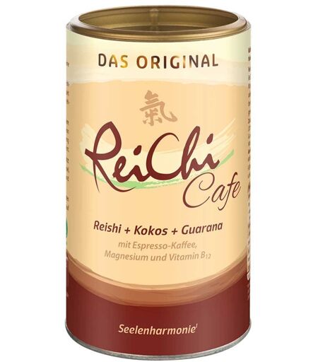 Anwendungsgebiet von ReiChi Cafe Reishi-Pilz Espresso Kaffee Kokos veganReiChi Cafe Reishi-Pilz Espresso Kaffee Kokos vegan hat seinen Namen vom Reishi-Pilz, der in China seit Jahrtausenden besonders verehrt und oft als Tee genossen wird. „Chi“ heißt übersetzt Lebenskraft. Erwecken Sie Ihre Lebenskraft1) und genießen Sie eine Tasse ReiChi Cafe. Das Besondere an ReiChi Cafe Reishi-Pilz Espresso Kaffee Kokos vegan ist seine einzigartige Komposition, die das erlesene zart herbe Aroma von Reishi-Pilz, Ginseng, Guarana und Espresso-Kaffee mit der mild-cremigen Note von Kokosmilch vereint.