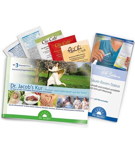 Dr. Jacob's Kuren haben das Ziel, das Immunsystem und die Lebenskraft zu unterstützen und einen gesunden, ausgewogenen Lebensstil zu fördern. Sie bieten individuelle Lösungen für unterschiedliche Bedürfnisse und Gesundheitsziele. Leicht beschriebene, auf den individuellen Bedarf ausgerichtete Kurprogramme: die Trinkkur, das Komplettprogramm mit Ernährungsempfehlungen und für alle mit Unverträglichkeiten das Spezialprogramm. Mit wertvollen Ernährungs- und Gesundheitstipps sowie leckeren basischen Rezepten.