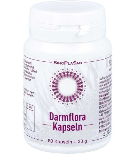Anwendungsgebiet von Darmflora Probiotikum KapselnDarmflora Probiotikum Kapseln ist ein Nahrungsergänzungsmittel für die Darmflora.Wirkstoffe / Inhaltsstoffe / ZutatenZutaten von Darmflora Probiotikum Kapseln : Füllstoffe: Mikrokristalline Cellulose, löslicher Ballaststoff: Oligofructose, Kapselhülle (Hydroxypropylmethylcellulose), Mischung probiotischer Bakterienkulturen (Bifidobacterium longum, Lactobacillus acidophilus, Lactobacillus paracasei, Bificobacterium bifidum, Streptococcus thermophilus), Lactase (enthält Maltodextrin), Trennmittel Kieselsäure. Zusammensetzung pro Verzehrempfehlung (3 Kapseln) von Darmflora Probiotikum Kapseln: Bakterienkulturen : 30 Milliarden Keime Oligofructose: 300 mg Lactase: 75 mg (3.750 Einheiten) GegenanzeigenBei bekannter Überempfindlichkeit gegenüber einem der oben genannten Inhaltsstoffe sollte dieses Produkt nicht angewendet werden. DosierungNehmen Sie täglich 1-3 Kapseln von Darmflora Probiotikum Kapseln mit einem Glas Wasser zu einer Mahlzeit ein. HinweiseNahrungsergänzungsmittel sollten nicht als Ersatz für eine ausgewogene, abwechslungsreiche Ernährung und gesunde Lebensweise verwendet werden. Die täglich empfohlene Verzehrmenge sollte nicht überschritten werden. Darmflora Probiotikum Kapseln sollten außerhalb der Reichweite von Kindern aufbewahrt werden. Nicht über 25 °C aufbewahren. Vor Licht und Feuchtigkeit schützen. Darmflora Probiotikum Kapseln können in Ihrer Versandapotheke www.juvalis.de erworben werden. ...