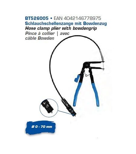 Brilliant Tools Schlauchschellen-Zange, mit Bowdenzug Länge 1: 260 mm Durchmesser bis: 70 mm Durchmesser von: 0 mm Gewicht: 500: g Länge Zugseil: 650: m zur Montage und Demontage von von schwer zugänglichen Schlauchschellen inklusive Arretierung und Rastfunktion , OE-Nummer:VIGOR:V4637BGS:470 ...