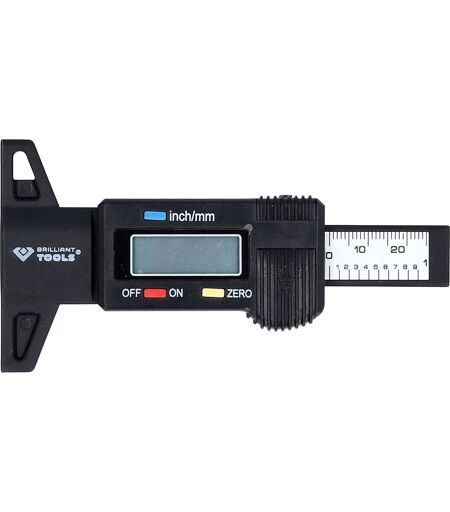 Brilliant Tools Digitaler-Tiefenmessschieber, 0 - 25 mm zum Messen von z.B. Bohrlöchern, Profiltiefe oder Bremsbelägen gut ablesbare LCD-Anzeige Messbereich 0 – 25 mm ( 0 -1 inch) Messanzeige umschaltbar in mm und inch Nullstellung in jeder Position inklusive LR44 Knopfzelle Messspitze aus Stahl Kunststoff Der digitale Tiefenmessschieber von BRILLIANT TOOLS BT114903 kann zur Messung von z.B. Bohrlöchern, Profiltiefen oder Bremsbelägen verwendet werden. Eine Nullstellung ist hierbei in jeder Position möglich. Die Messanzeige kann das Maß in mm oder Inch anzeigen. Die passende Batterie LR44 ist im Lieferumfang enthalten. Die große LCD-Anzeige kann gut abgelesen werden und die maximale Messtiefe von 25 mm anzeigen. Ein Qualitätswerkzeug powered by KS TOOLS. Gewicht [g]:55 g Messbereich von [mm]:0 mm Messbereich bis [mm]:25 mm , OE-Nummer:BGS:1941VIGOR:V1584 ...