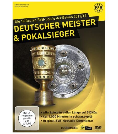AspectRatio : 1.77 : 1, AudienceRating : Freigegeben ohne Altersbeschränkung, Brand : BORUSSIA DORTMUND BVB, Binding : DVD, Label : Sportainment (Alive), Publisher : Sportainment (Alive), NumberOfDiscs : 5, RegionCode : 2, NumberOfItems : 5, Format : Dolby, medium : DVD, publicationDate : 2012-07-01, releaseDate : 2012-07-20, runningTime : 1025 minutes, theatricalReleaseDate : 2012-01-01, actors : Borussia Dortmund BVB, directors : Borussia Dortmund BVB ...