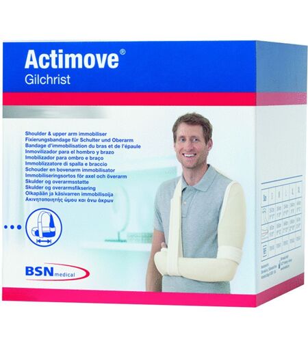 Der Gilchrist-Verband ist bei Schulter- und Oberarmverletzungen das Mittel der Wahl zur Fixierung und Ruhigstellung. Die Spezialbandage Tricodur® Gilchrist vereinfacht das Anlegen des Verbandes wesentlich. Nach Auswahl der richtigen Größe kann die Bandage schnell und sicher angelegt werden. Ablängen und Zuschneiden entfallen. Durch dasim Handgelenkbereich eingearbeitete Polstermaterial ist ein Auspolstern oder Fixieren mit Sicherheitsnadeln nicht erforderlich. Das Polster sichert ein angenehmes Tragen. Die gebrauchsfertige Spezialbandage Tricodur® Gilchrist fixiert den Oberarm in Adduktionsstellung und ist rechts wie links tragbar. Durch den hohen Baumwollanteil ist der Verband luftdurchlässig und hautverträglich. Der Oberkörper bleibt frei, die Beweglichkeit von Daumen und Fingern bleibt erhalten. Die Körperpflege wird erleichtert. Krankengymnastische Übungen sind jederzeit möglich. Tricodur® Gilchrist besteht aus Baumwolle, Polyamid, Elastodien und Polyurethan und ist bei 30° C waschbar. Anwendung nach operativen Eingriffen Tendomyopathie (schmerzhafte Muskel-Sehnen-Erkrankung) leichte Schulterinstabilität Schulterluxation (Verrenkung der Schulter) Distorsion (Verstauchung) Scapulafraktur (Bruch des Schulterblatts) Rotatorenmanschettenverletzung Subkapitale Humerusfraktur (Oberarmkopfbruch) Humerusschaftfraktur (Oberamschaftbruch) Anwendungsdauer Mehrere Wochen Abmessungen Gr. L Armlänge 54 - 60 cm Armumfang 32 - 40 cm Armlänge vom Schultergelenk bis zum Fingeransatz messen. Oberamumfang messen. ...