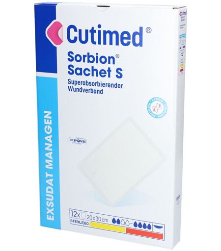 CUTIMED Sorbion Sachet S Wundauflage 20x30 cm Cutimed® Sorbion® Sachet S ist ein superabsorbierender Wundverband zur Versorgung von stark bis mäßig exsudierenden Wunden. Die hydrokinetische Fasermatrix mit integrierten stark wasserspeichernden Polymeren (Superabsorbern) schafft ein feuchtes Wundmilieu, absorbiert hohe Mengen an Wundexsudat und schließt es sicher im Produktkern ein. Auf diese Weise kann das Risiko von Mazerationen reduziert und der Heilungsprozess optimal unterstützt werden. Durch die hohe Exsudataufnahmekapazität und die hohe Retentionsleistung von Cutimed® Sorbion® Sachet S sind weniger Verbandwechsel notwendig, sodass eine heilungsfördernde Wundruhe geboten sowie der Behandlungsaufwand reduziert werden kann. Zusätzlich sorgt der Expansionsrand für einen breitflächigen Wundkontakt. Vorteile sehr hohe Exsudataufnahmekapazität und Retentionsleistung sicherer Einschluss von Exsudat, auch unter Kompression Schaffung eines feuchten Wundmilieus kontinuierliche Wundbettreinigung Reduktion der Geruchsbelastung Cutimed® Sorbion® Sachet S besteht aus einem superabsorbierenden Kern und ist von einem ultraschallversiegelten Polypropylenvlies umhüllt. Das Produkt ist frei von pharmakologischen Wirkstoffen. Anwendungsgebiete: stark bis mäßig exsudierende Wunden chronische Wunden chronische Wunden, wie z.B. Ulcus cruris verschiedener Genese, diabetisches Ulcus, Dekubitus sekundärheilende Wunden verschiedener Genese exulzerierende Karzinome und ähnliche sezernierende Wunden auch unter Kompressionstherapie anwendbar Verbandwechsel: abhängig vom Patienten und der Wundsituation, spätestens jedoch nach vier Tagen ...