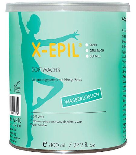 Wasserlösliches Enthaarungswachs auf Honig-Basis für eine noch sanftere Enthaarung. Natürliche Inhaltsstoffe machen die Haut geschmeidig und beruhigen sie. Das X-Epil Softwachs ist für die einfache und gründliche Enthaarung bei niedriger Temperatur an Beinen und Körperpartien sehr gut geeignet. Inhalt 800 ml. Sicherheitshinweise - Allgemeine Hinweise zur Haarentfernung: Die Haarentfernung sollte niemals bei Sonnenbrand, Allergien oder Wunden durchgeführt werden. Nicht anwenden bei Hautmalen, Hautwarzen, Ekzemen und Krampfadern. Die Haut sollte sauber und trocken sein, frei von Cremen und Deodorants. Um ein leichtes Röten von empfindlichen Hautpartien zu vermeiden, ist es ratsam, die Haarentfernung abends vor dem Schlafengehen durchzuführen. Bevor Sie das erste Mal eine Enthaarung durchführen, empfehlen wir, dass Sie einen kleinen Allergietest auf der Innenseite des Unterarms durchführen. Wenn Sie innerhalb von 24 Stunden keinerlei Reaktion verspüren, kann das Produkt bedenkenlos angewendet werden. Während der ersten 24 Stunden nach der Enthaarung ist die Haut besonders empfindlich. Sie sollten daher auf den enthaarten Hautpartien keine Parfums, Deodorants o.ä. verwenden. Bitte beachten Sie die Gebrauchsanweisung. ...
