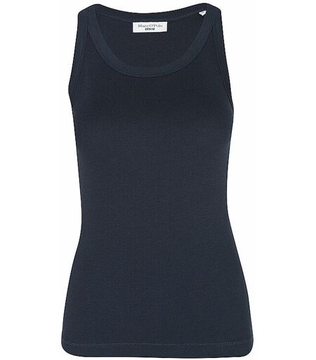 Damen Top aus Rippjersey Bio-Baumwolle und Elasthan GOTS Organic Taillierter Schnitt Rundhalsausschnitt Ärmellos Unifarben Farbbezeichnung: Navy Teal Material: 96% Baumwolle, 4% Elasthan Die Marke Marc O`Polo Denim ist Mitglied der Fair Wear Foundation. ...