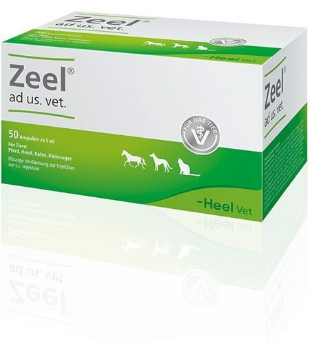 Registriertes homöopathisches Arzneimittel, daher ohne Angabe einer therapeutischen Indikation.Bei Fortdauer der Krankheitssymptome ist medizinischer Rat einzuholen. Gegenanzeigen: Keine bekannt. Wechselwirkungen: Keine bekannt. Wie bei allen Arzneimitteln können auch bei homöopathischen Arzneimitteln Wechselwirkungen mit anderen Arzneimitteln auftreten. Wenn Zeel ad us. vet. gleichzeitig mit einem anderen Arzneimittel angewendet werden soll, fragen Sie dazu Ihren Tierarzt. Nebenwirkungen: Keine bekannt. Hinweis: Bei der Behandlung mit einem homöopathischen Arzneimittel können sich die vorhandenen Beschwerden vorübergehend verschlimmern (Erstverschlimmerung). In diesem Fall sollten Sie das Arzneimittel absetzen und Ihren Tierarzt befragen. Falls Sie eine Nebenwirkung bei Ihrem Tier / Ihren Tieren feststellen, die nicht in der Packungsbeilage aufgeführt ist, teilen Sie diese Ihrem Tierarzt oder Apotheker mit. Nach Anbruch sofort verbrauchen. Angebrochene Ampullen sind zu verwerfen. Dosierung und Art der Anwendung: Soweit nicht anders verordnet, Zeel ad us. vet. subkutan injizieren. Entsprechend der Tierart beträgt die Einzeldosis pro Tag:Großer Hund: 3-4 mlMittlerer Hund: 2 mlKleiner Hund: 1-2 ml Vorsichtsmaßnahmen für die Anwendung:´ Bei anhaltenden, unklaren, periodisch oder neu auf tretenden Beschwerden, Fieber oder schweren Störungen des Allgemeinbefindens sollte umgehend ein Tierarzt aufgesucht werden. Bei Überempfindlichkeit gegen Korbblütler sollte Zeel ad us. vet. mit Vorsicht eingesetzt werden. Wie alle Arzneimittel sollten auch homöopathische Arzneimittel während der Trächtigkeit und Laktation nur nach Rücksprache mit demTierarzt angewendet werden. Zusammensetzung: 1 Ampulle zu 5 ml (= 5 g) enthält: Wirkstoffe: Cartilago suis Dil. D6 (HAB, Vorschrift 42a) 5 mg, Funiculus umbilicalis suis Dil. D6 (HAB, Vorschrift 42a) 5 mg, Embryo totalis suis Dil. D6 (HAB, Vorschrift 42a) 5 mg, Placenta totalis suis Dil. D6 (HAB, Vorschrift 42a) 5 mg, Solanum dulcamara Dil. D3 25 mg, Symphytum officinale e radice Dil. D6 (HAB, Vorschrift 3a) 25 mg, Nadidum Dil. D8 (HAB, Vorschrift 5a) 5 mg, Coenzym A Dil. D8 (HAB, Vorschrift 5a) 5 mg, Sanguinaria canadensis Dil. D4 7,5 mg, Arnica montana Dil. D3 50 mg, Sulfur Dil. D6 9 mg, Natrium diethyloxalaceticum Dil. D8 aquos. (HAB, Vorschrift 8b) 5 mg, Acidum alpha-liponicum Dil. D8 aquos. (HAB, Vorschrift 8b) 5 mg, Rhus toxicodendron Dil. D2 25 mg. Die Bestandteile 1 bis 11 werden über die letzten 2 Stufen gemäß HAB, Vorschrift 40a gemeinsam potenziert. Sonstige Bestandteile:Natriumchlorid, Wasser für Injektionszwecke. ...