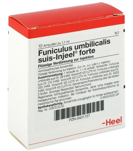 Zu Risiken und Nebenwirkungen lesen Sie die Packungsbeilage und fragen Sie Ihre Ärztin, Ihren Arzt oder in Ihrer Apotheke. Funiculus Umbilicalis suis Injeel forte Ampullen sind apothekenpflichtig und können in Ihrer Versandapotheke www.juvalis.de erworben werden. ...