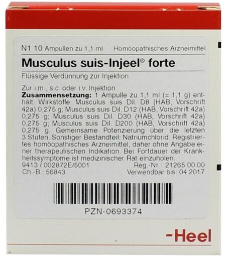 Zu Risiken und Nebenwirkungen lesen Sie die Packungsbeilage und fragen Sie Ihre Ärztin, Ihren Arzt oder in Ihrer Apotheke. Musculus suis Injeel forte Ampullen sind apothekenpflichtig und können in Ihrer Versandapotheke www.juvalis.de erworben werden. ...
