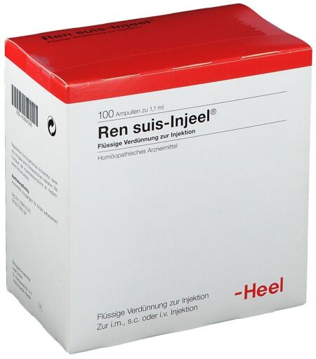 Homöopatisches ArzneimittelRegistriertes homöopathisches Arzneimittel, daher ohne Angabe einer therapeutischen Indikation. Bei Fortdauer der Krankheitssymptome ist medizinischer Rat einzuholen.Gegenanzeigen:Keine bekannt.Vorsichtsmaßnahmen für die Anwendung:Anwendung in der Schwangerschaft und Stillzeit: Wie alle Arzneimittel sollten auch homöopathische Arzneimittel während der Schwangerschaft und Stillzeit nur nach Rücksprache mit dem Arzt angewendet werden.Wechselwirkungen:Keine bekannt. Allgemeiner Hinweis: Die Wirkung eines homöopathischen Arzneimittels kann durch allgemein schädigende Faktoren in der Lebensweise und durch Reiz- und Genussmittel ungünstig beeinflusst werden. Falls Sie sonstige Arzneimittel einnehmen, fragen Sie Ihren Arzt.Dosierung und Art der Anwendung:Soweit nicht anders verordnet: Die Anwendung erfordert eine individuelle Dosierung durch einen homöopathisch erfahrenen Therapeuten. Im Rahmen der Selbstmedikation sollte daher nurparenteral einmal 1 bis 2 ml i.v., i.m. oder s.c. injiziert werden. Zur Fortsetzung der Therapie wird empfohlen sich an einen homöopathisch erfahrenen Therapeuten zu wenden.Dauer der Behandlung:Auch homöopathische Arzneimittel sollten ohne ärztlichen Rat nicht über längere Zeit angewendet werden.Nebenwirkungen:Keine bekannt. Hinweis: Bei der Anwendung eines homöopathischen Arzneimittels können sich die vorhandenen Beschwerden vorübergehend verschlimmern (Erstverschlimmerung). In diesem Fall solltenSie das Arzneimittel absetzen und Ihren Arzt befragen. Wenn Sie Nebenwirkungen beobachten, teilen Sie diese bitte Ihrem Arzt oder Apotheker mit.Hinweise zu Verfallsdatum und Aufbewahrung:Arzneimittel unzugänglich für Kinder aufbewahren! Das Verfallsdatum dieser Packung ist auf Behältnis und äußerer Umhüllung aufgedruckt. Verwenden Sie diese Packung nicht mehr nach diesem Datum! Für dieses Arzneimittel sind keine besonderen Lagerbedingungen erforderlich.Zusammensetzung:1 Ampulle zu 1,1 ml enthält: Wirkstoffe: Ren suis Dil. D8 (HAB, Vorschrift 42a) 0,275 ml Ren suis Dil. D12 (HAB, Vorschrift 42a) 0,275 ml Ren suis Dil. D30 (HAB, Vorschrift 42a) 0,275 ml Ren suis Dil. D200 (HAB, Vorschrift 42a) 0,275 mlGemeinsame Potenzierung über die letzten 3 Stufen. Sonstiger Bestandteil:Natriumchlorid. ...